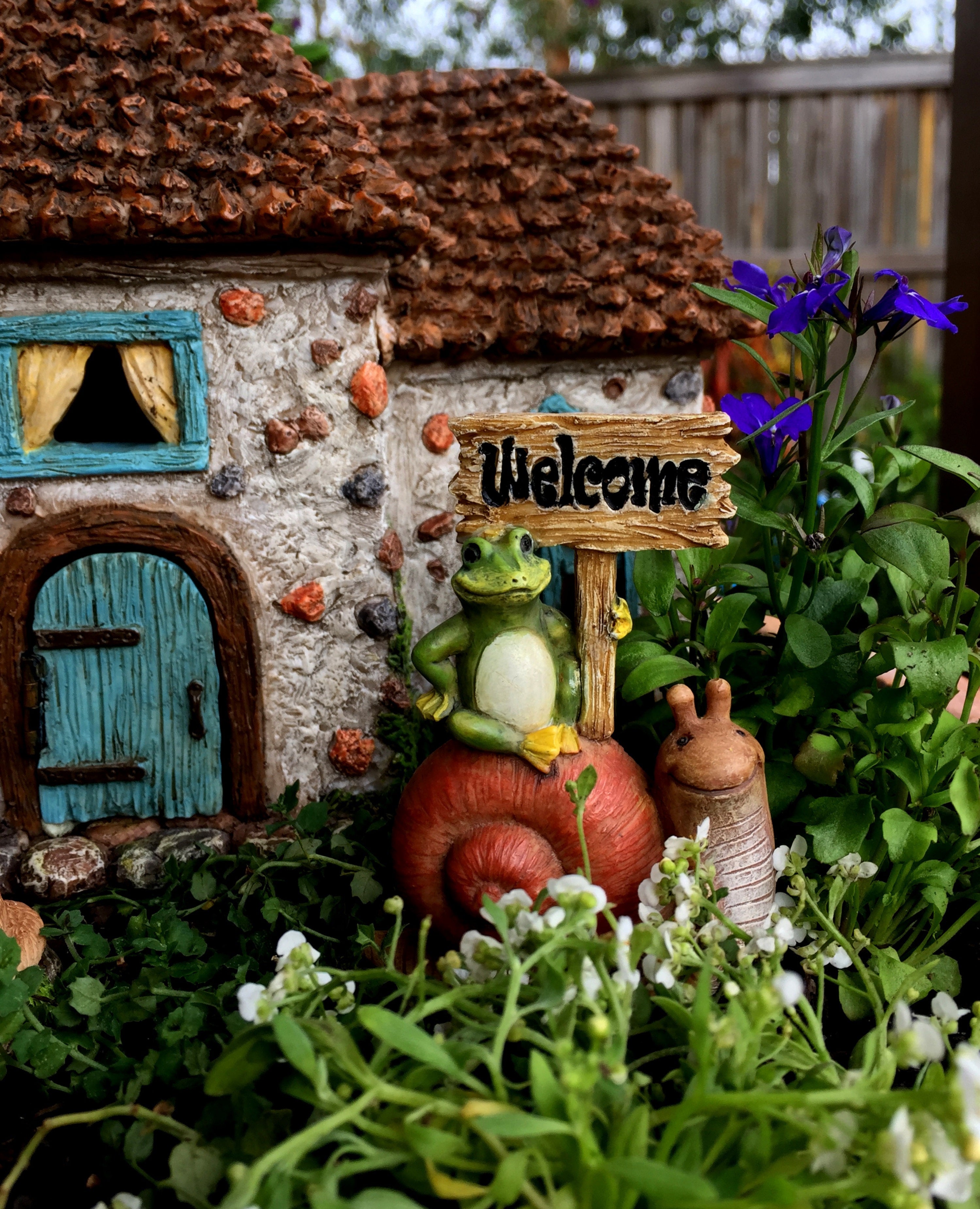 • 🐌 The Snail Welcome Sign: A whimsical garden snail carrying a "Welcome" signpost.